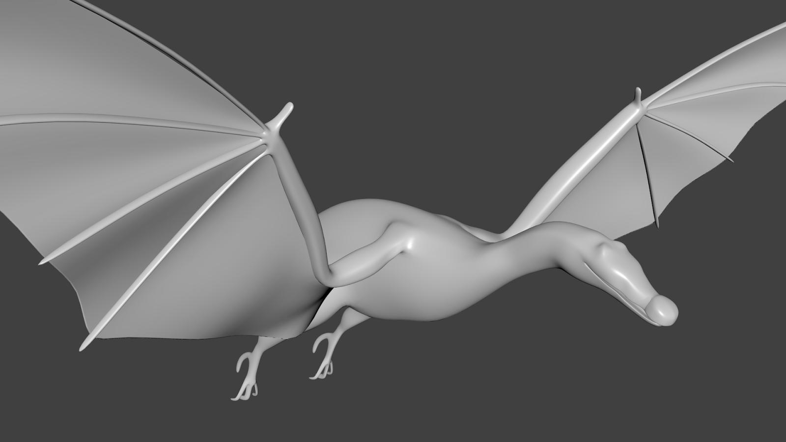 Left is the two above images overlaid to give a better idea of what I am trying to make. Again, living in a swamp, I am trying to make it look semi-aquatic. The only main detail missing is webbing in the talons. Once I have finished the retopologizing which may take some time while /I figure out details I want to add, I will move on to the sculpting portion. My first pass will be muscle tone in the jaw, wings and legs. My second pass will be small details like scales. Finally I am going to make an asymmetric sculpt pass to add scaring, damage to the wings, breaks in spikes or teeth. While I am not sure I will be able to get ll I want to finished by the deadline, I hope to get most of it and use the finished image as a starting point for a portfolio.